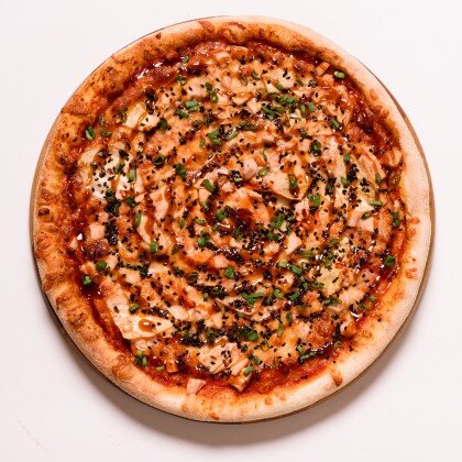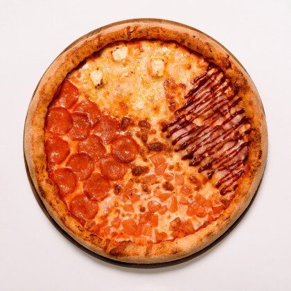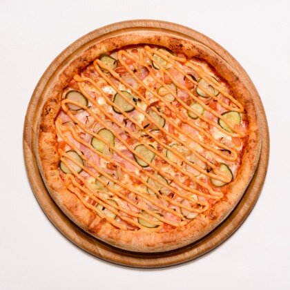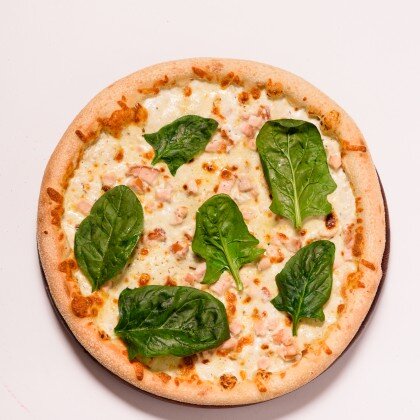 Соус бешамель,моцарелла,мортаделла,семечки тыквы,оливковое масло,крем чиз.