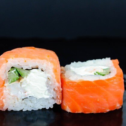 Рис, нори, лосось терияки, крем чиз, огурец. (8 шт)